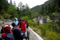 车开到进山的远去门口,已经有几千人在这里等着骑马进山,雨越下越大,有部分人等不及,就自行徒步上山,我因为背着几十斤的相机和器材,还是决定骑马;雨继续的下着,看到卖雨衣的(昨天带我们住房的藏族小伙子),开始他卖10元一件,看雨下大了,就要15元一件,没有办法还得买啊(雨衣非常薄,但可以暂时防雨),我穿上它,感觉还暖和了,真是一举两得;骑马上山要40元,牵马的人要帮我背东西收20元,共花了60元;马只到冲古寺下面,到冲古寺还有1.7公里。我还得继续自己背着东西上去。